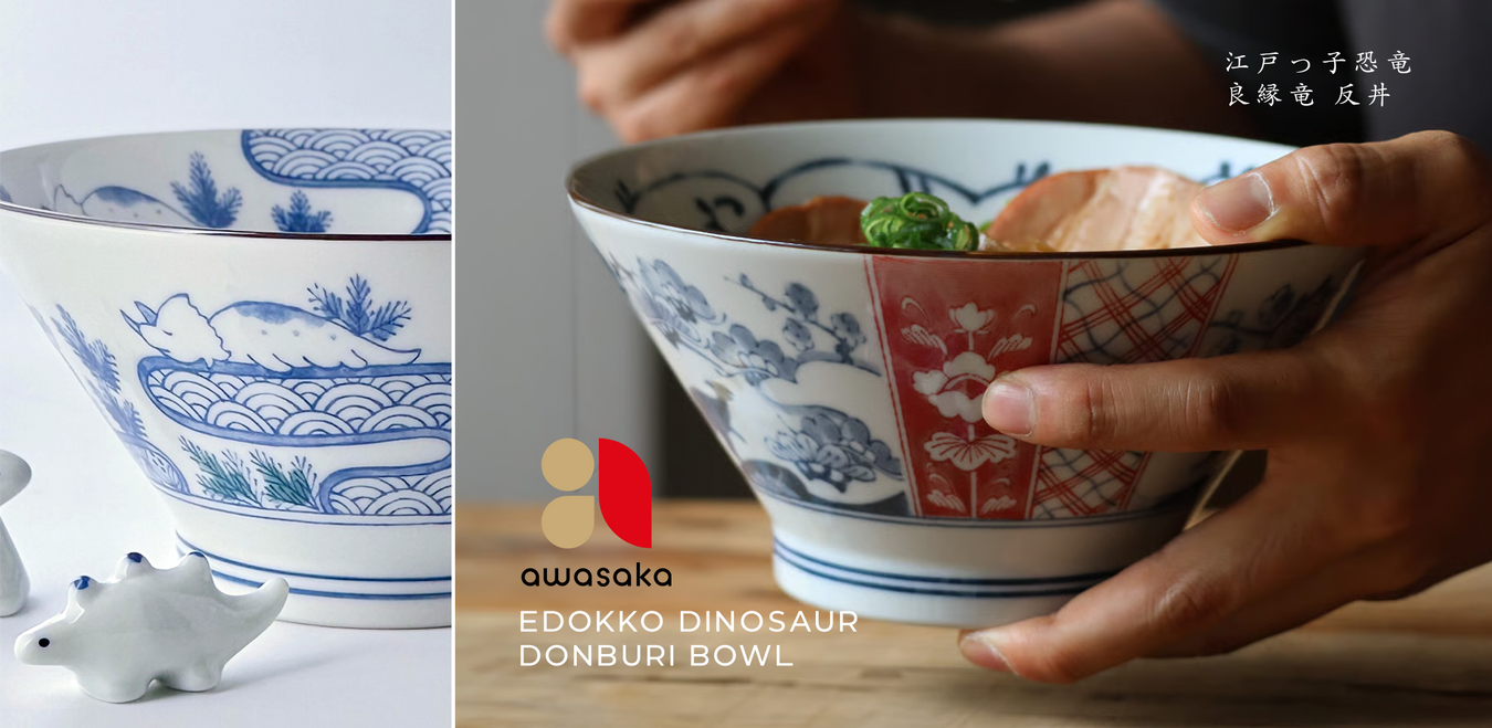 View full detailsEdokko Dinosaur Seigaiha Japanese Donburi Bowl - 18.5cm The Edokko Dinosaur Donburi Bowl blends traditional Japanese aesthetics with a touch of mod...