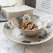 This charming bowl from the Aito Nordic Flower series combines the shape of petals with traditional Japanese hand-painted style flowers. Against a textured linen-coloured background, the bowl features delicate white and light blue floral motifs, bringing a touch of gentle elegance to your table.