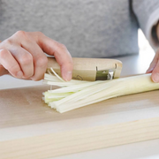 The Oyanagi Sangyo Wooden Green Onion Shredder is an original kitchen tool developed by a woodworking maker in Tsubame-Sanjo, a Japanese region renowned for its metalworking and craftsmanship. It is designed specifically for creating shiraga-negi (fine julienned white spring onion) with ease and precision.