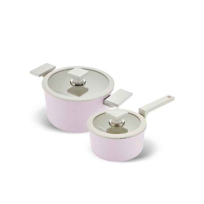 Happycall Meister Edge Ceramic Nonstick Induction Pot Set - 16cm & 20cm - Lavender - 4-Piece