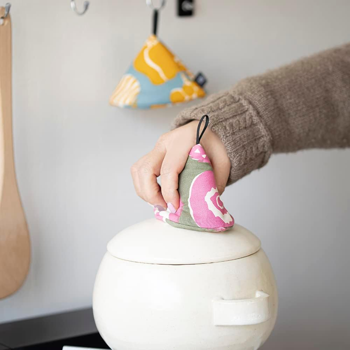 Known in Japan as a 'sankaku nabe tsukami' (三角鍋つかみ), or 'triangle pot grabber', this charming cone-shaped pot holder is the traditional tool for handling hot donabe (clay pots). Its unique shape is also perfect for gripping the handles and lids of other cookware like Dutch ovens.