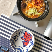 Add a touch of maritime charm to your meals with the Saji Tairyoumaru Mini Donabe. 'Tairyoumaru' evokes the spirit of a fishing boat with a bountiful catch, a theme reflected in this pot's delightful design. The lid is adorned with a classic blue seigaiha wave pattern, a symbol of good fortune and resilience in Japanese culture.